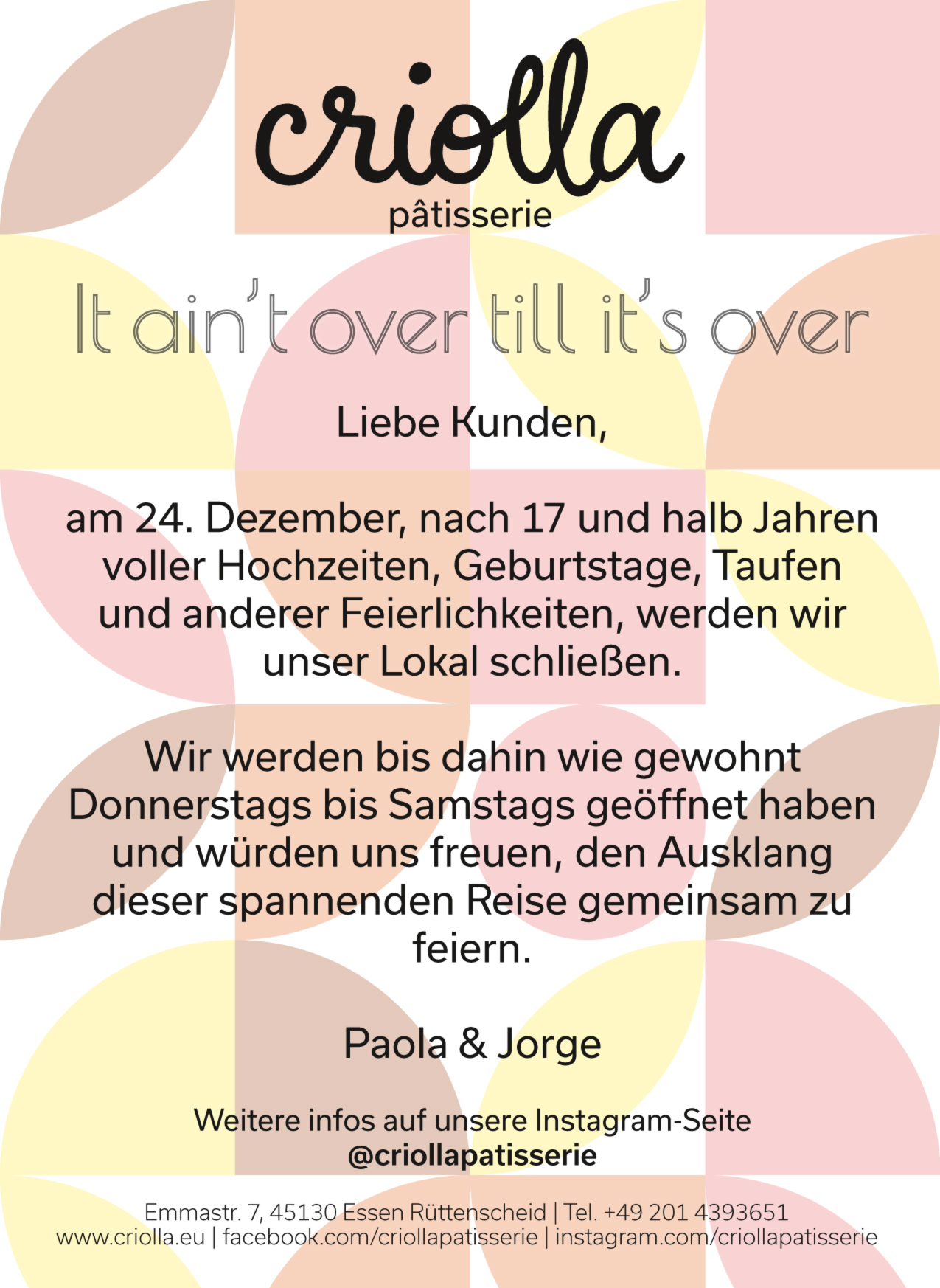 Weitere Informationen -wie die ankommende Wedding Weekend Termine- findet man auf Facebook und Instagram @criollapatisserie
